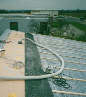 eingeblasen und verdichtet sich dort zu einer winddichtenden und